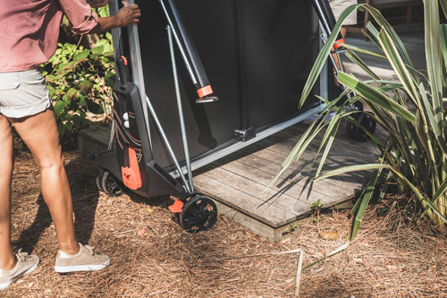 Velika dvojna kolesa na mizah Cornilleau ponujajo številne prednosti. Z lahkoto premagajo ovire, gladko potujejo po vseh vrstah terena in so izjemno okretni, enostavni za manevriranje in stabilni v nekaterih zapletenih situacijah, kot je zavijanje okrog tesnega kota, da dosežete idealno mesto za postavitev vaše mize.