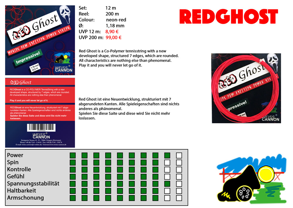 Povsem nova teniška struna Weiss Cannon Red Ghost nudi izredno dobro razmerje med udobjem, kontrolo, rotacijo močjo in občutkom.